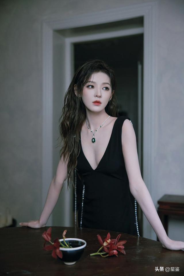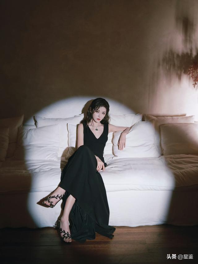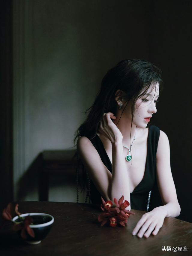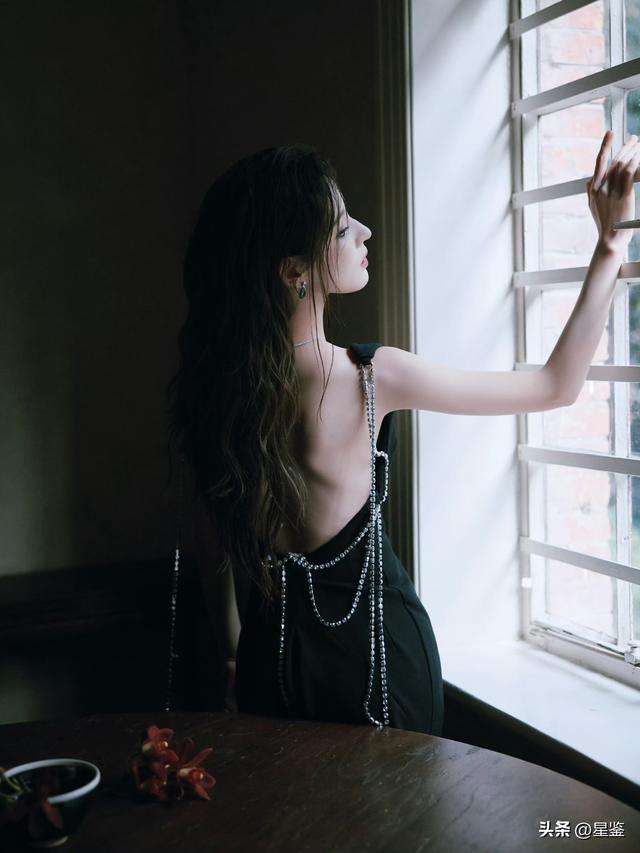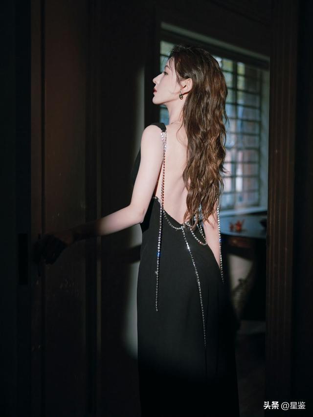 张予曦这组光影大片真的把“新中式贵气感”拉满了!一袭黑色深V长裙简约却不简单,利落剪裁勾勒出曼妙身姿,后背垂坠的水钻链条在暗夜里流转光芒,巧妙露背设计带着一丝慵懒的性感,又纯又欲。