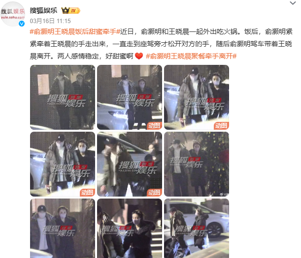 近日,有媒体拍到两人低调外出吃火锅,饭后俞灏明紧紧牵着王晓晨的手走出餐厅,一路十指紧扣走到座驾旁才松开,随后亲自驾车带她离开。