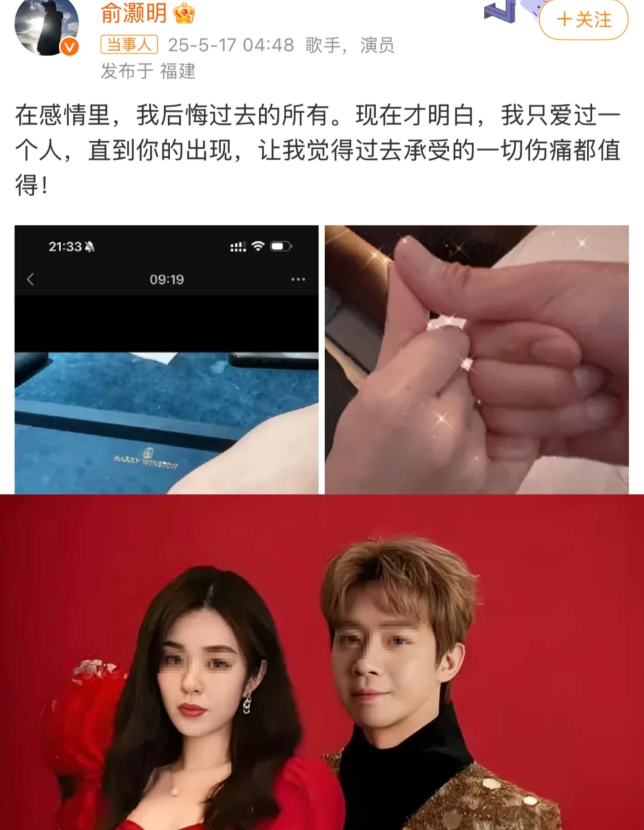 去年俞灏明曾在微博晒出钻戒,高调官宣与王晓晨的恋情,引发全网祝福。